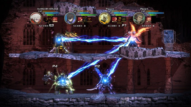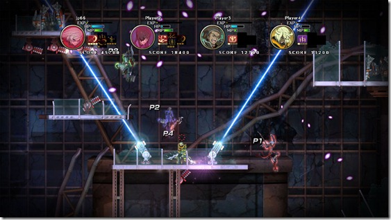 There are also magic spells, called MoonSault Combinations. These are mapped to the circle button, use MP, and range from simple projectiles and shields to screen-clearing chaos and enemy blinding spells. Four can be equipped at a time and be switched between with the d-pad. They can be pretty helpful when the right situations present themselves, but I only really used them when my regular attacks were ineffective. Some of them can also be used to aid your allies in multiplayer, which somewhat justifies their high MP cost. Now, if the combat was just a way to get through the stages, it would be fine. It’s underwhelming, but it does allow you to kill whatever needs to be killed. However, Moon Diver also draws inspiration from Devil May Cry. While you’re running through the levels, occasionally magical purple barriers (which are never explained) will show up and you’ll have to kill everything that pops out at you. There may be a platform or two in this little boxed in arena, but there’s no real opportunity to utilize each ninja’s acrobatics. While you might think that this would be an opportunity to take on new and unique enemies, these are essentially texture-swapped robots and robo-mosquitos. They’re not that bad at first, but some drag on for a ludicrous amount of time, and considering how many there are per level, how much they break the flow of fighting through the already ludicrous amounts of enemies in each area, and (most importantly) how frustratingly arbitrary they feel, they get a little old after level one. However, by fighting through hundreds of enemies per level, the playable characters can level up. Each level gives the character one Customization Point, which they can put into developing their HP, MP, or Power. Certain characters develop more effectively in some directions. For instance, the main character Seyfert will gain more HP and MP per CP invested than he will gain attack power.