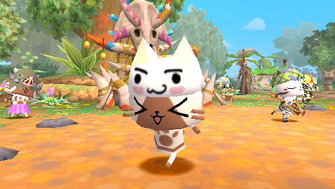 Felynes, if these screenshots are any indication, love hats. This batch of Monster Hunter Diary: Poka Poka Felyne Village media shows the cat-like creatures wearing watermelons, fezs, mushrooms, and poogies on their heads.