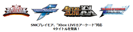 SNK is fueling Xbox Live Arcade with actual arcade games. Next year, NeoGeo Battle Coliseum, The King of Fighters 2002: Ultimate Match, KOF Sky Stage, and Metal Slug XX will be available as downloads.