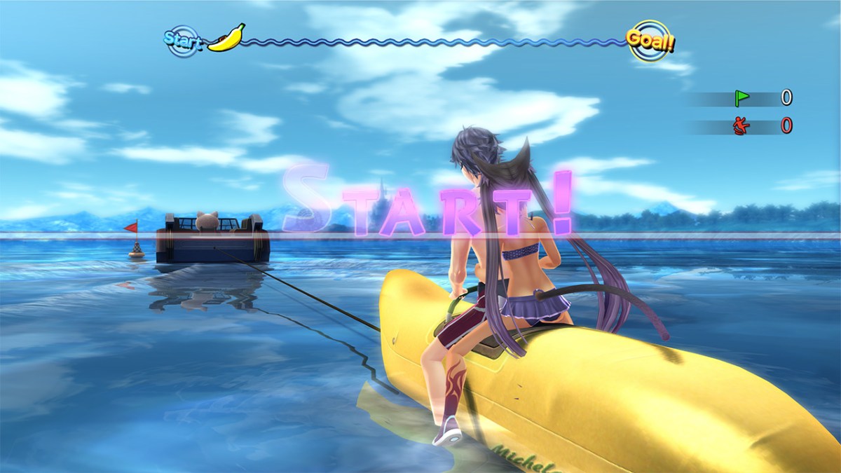 Banana boat with a partner! You’ll need to turn the left analog stick in order to not get knocked off the boat. Obtain the flags floating on the water to earn the required score!