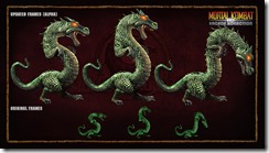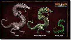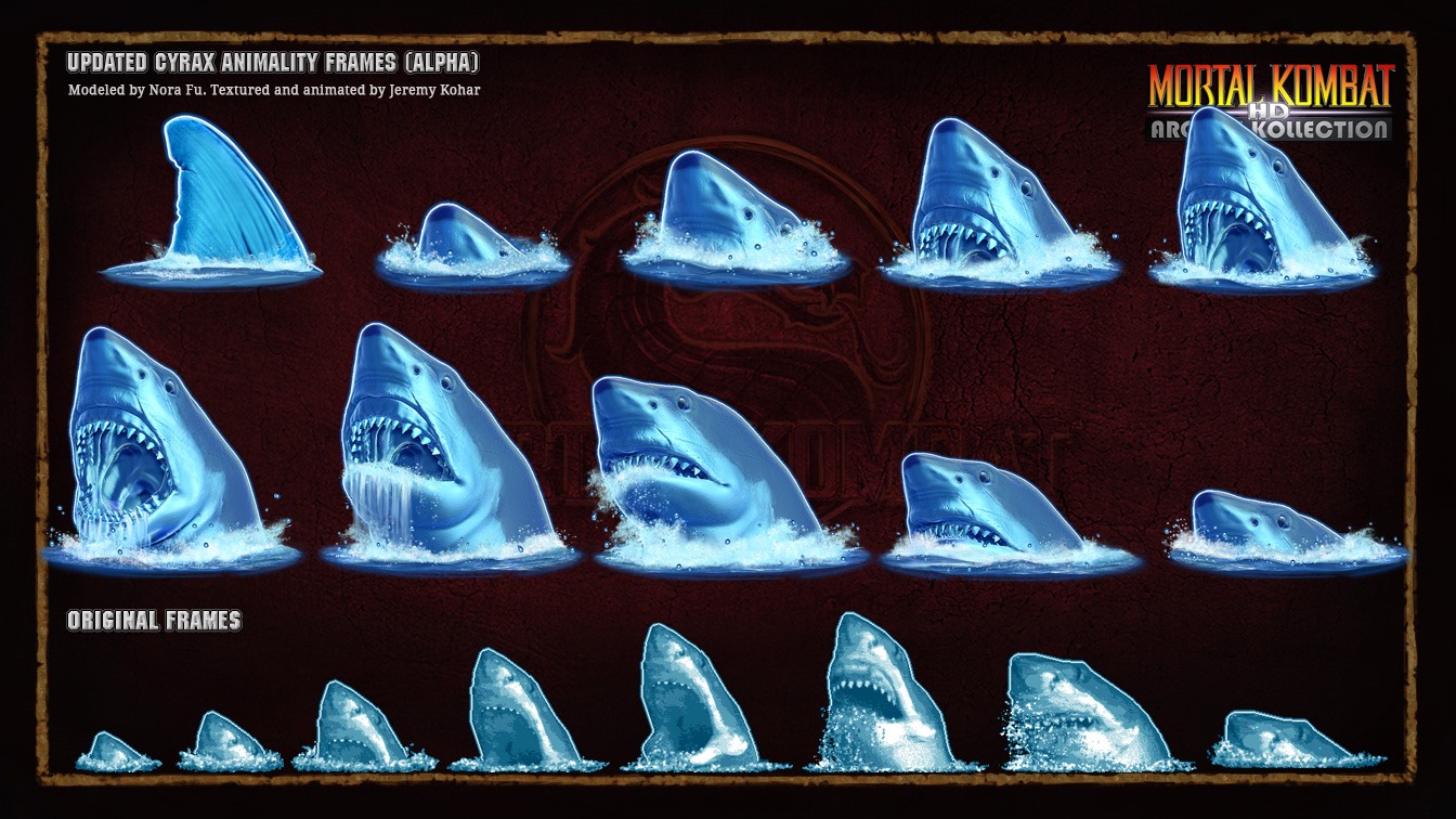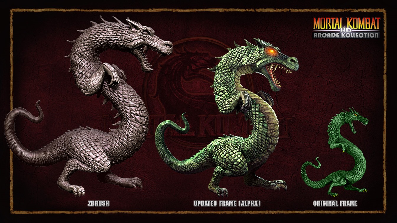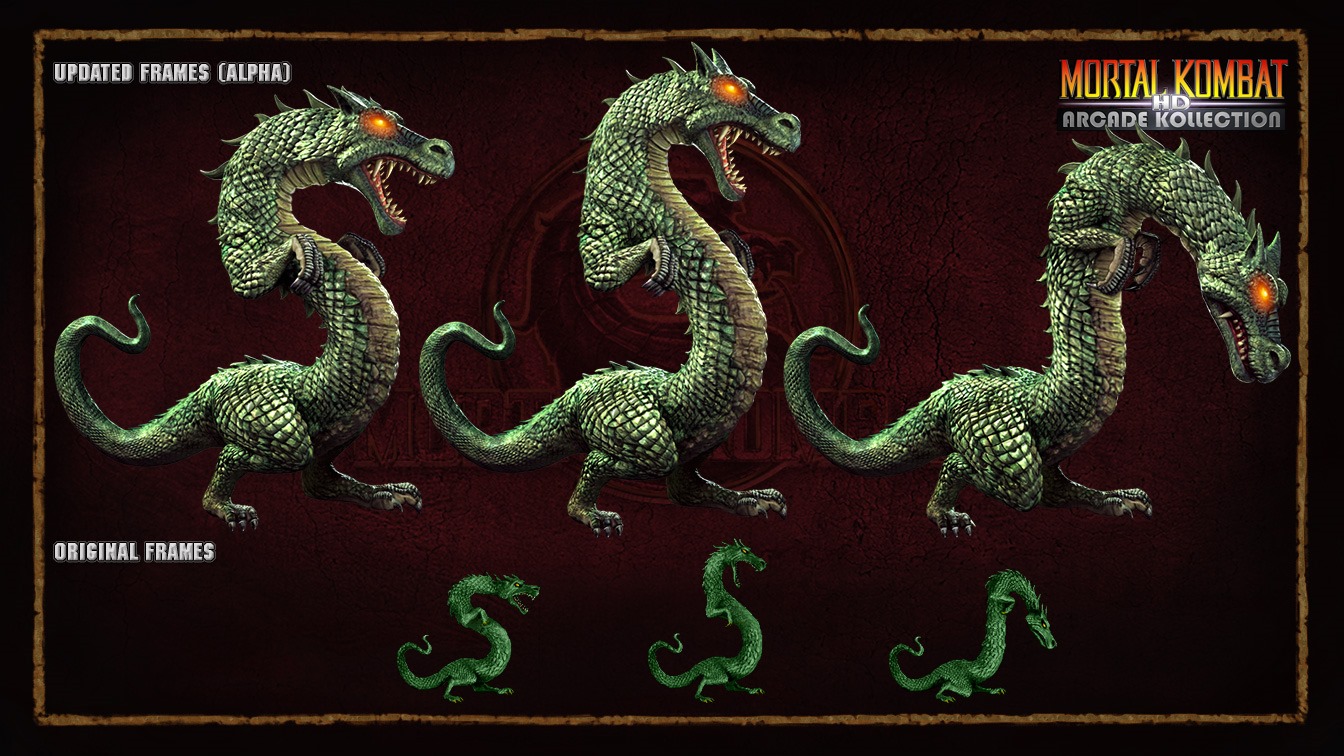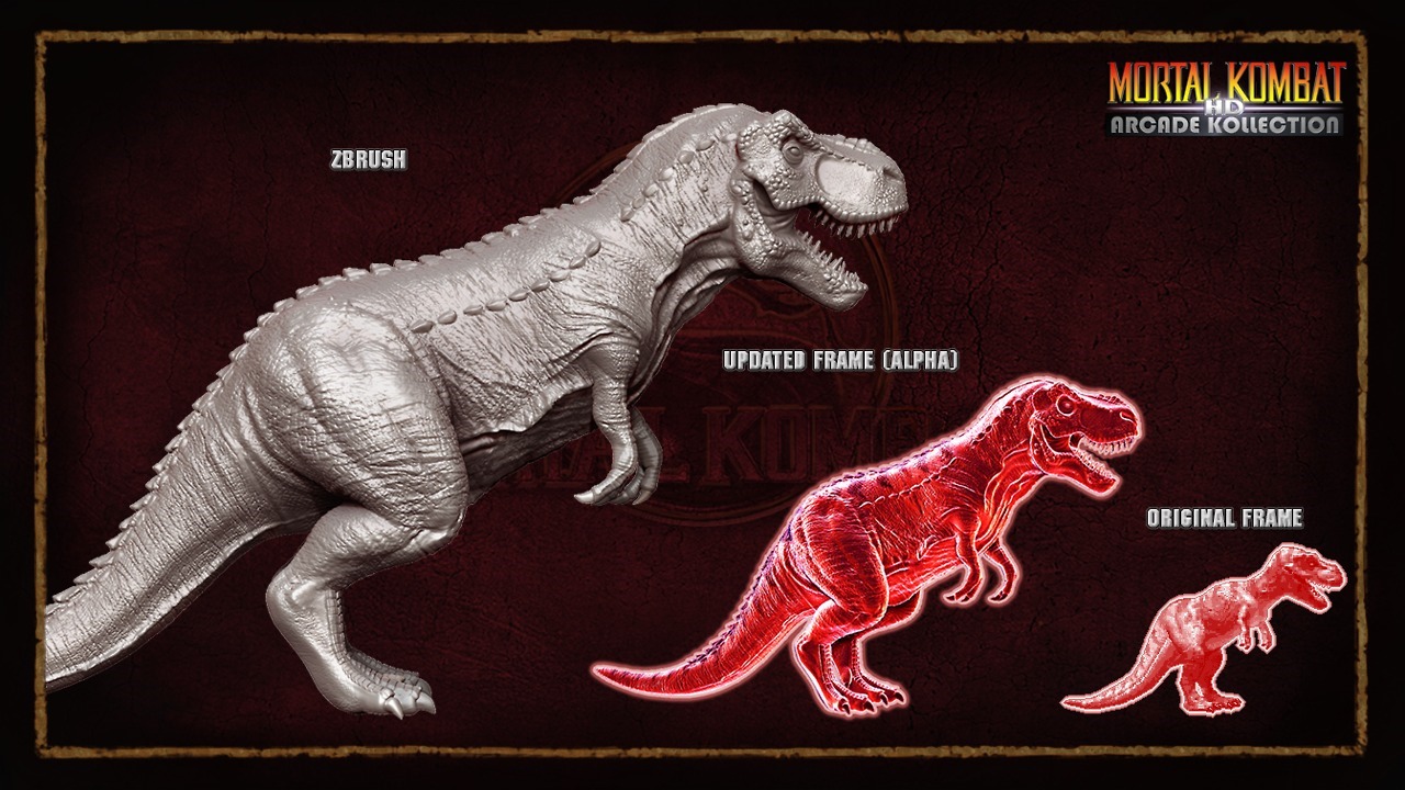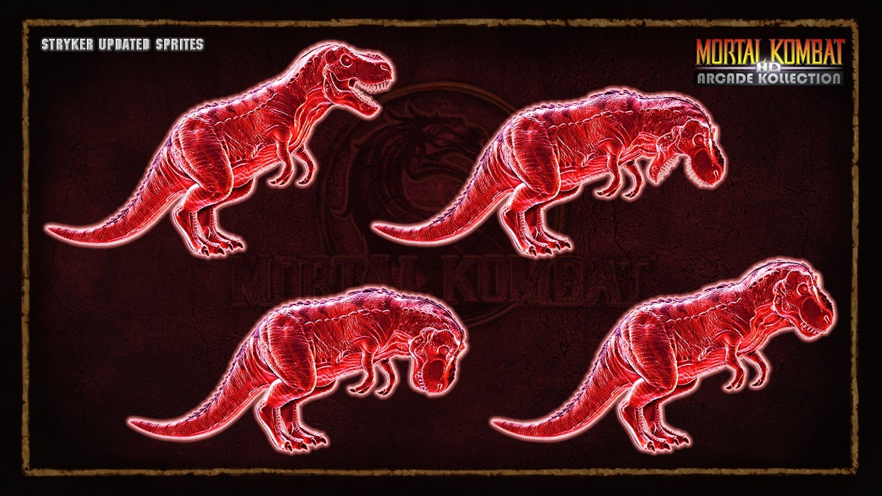 When Warner Bros. acquired Midway they canceled the project and opted to release straight ports of the Mortal Kombat arcade games as Mortal Kombat Arcade Kollection. A few pieces of artwork from Mortal Kombat Arcade Kollection HD leaked out like a new model for Mileena and Stryker’s T-rex animality.
