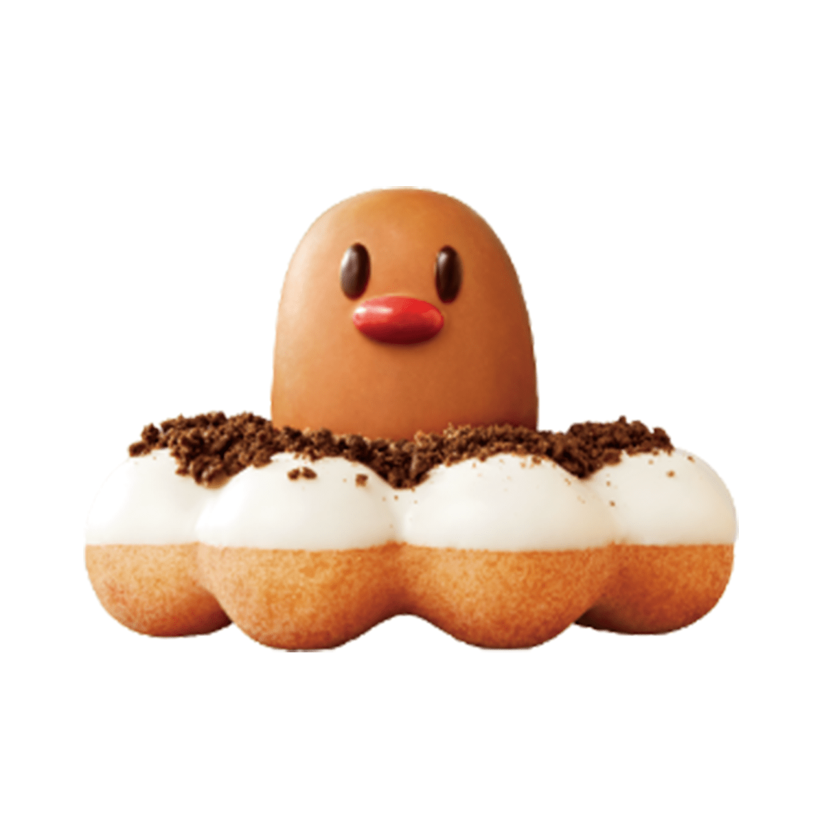 As mentioned before, new in 2024 to the Mr. Donut Pokemon Collection is the “Pon de Digda” Donut, inspired by Diglett. It’s crafted with a ring-shaped base, topped with chocolate crunch and custard cream, and adorned with a caramel-flavored cream puff. Another themed option, the Monster Ball Ring, is designed to look like a Poke Ball. The stores use white chocolate and strawberry sugar to mimic the red and white pattern of the in game item. It is priced at about ¥248 ($1.65 USD) for take-out and ¥253 ($1.69 USD) for eat-in.