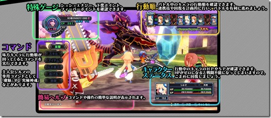 The commands are: Attack, Skill, Item, Change, Run Away and Defend.There’s also a help bar right beneath, where it will show descriptions of each command. As the main character, Sylma will have her own special commands and each character will have their own unique skills.