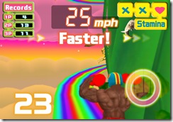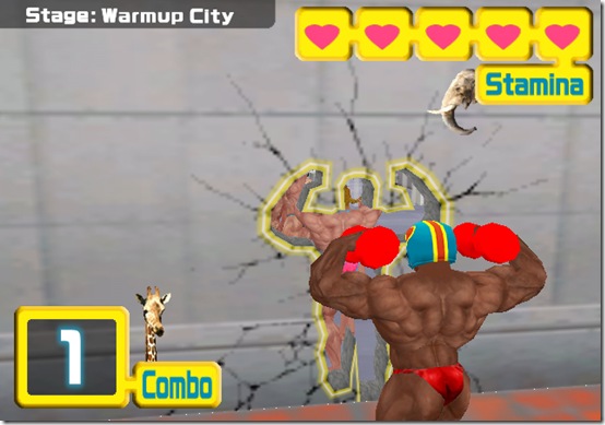 You control your character by making one of four muscle flexing poses with the nunchuck and remote. Don’t worry about running, your muscle man does that automatically. All you have to do is match the thief’s holes with the right pose.