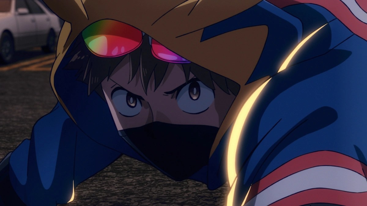 Unfortunately for Koichi, his quirk isn’t too helpful for fighting bad guys. Koichi’s quirk just has him slide along the ground at the speed of a bicycle. His life changes, though, when him and an underground pop idol are saved one day by a vigilante that acts like the messy Batman version of All Might.