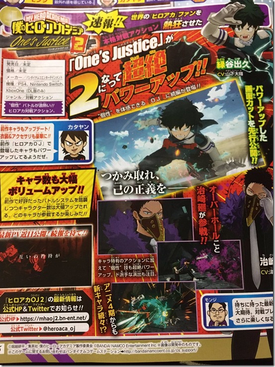 Bandai Namco announced My Hero One’s Justice 2 for PS4, Xbox One, and Switch as a follow-up title to the 2018 title. This week’s issue of Jump magazine provides details and a first look. [Thanks, @Spytrue.]