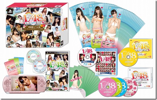 Finally, there is the "Please Don’t Auction It!" box set. Namco Bandai packed the PSP game, UMD video, 10 photographics, a making & fashion DVD collection with four discs (420 minutes of footage), Team 4 special DVD (90 minutes), 48 vertical posters, product codes to download 48 custom PSP themes, and a Blu-ray disc with HD versions of all the love confessions (70 minutes). This collector’s edition costs 13,629 yen ($169) and will probably be a lot more when it shows up on Yahoo Auctions.