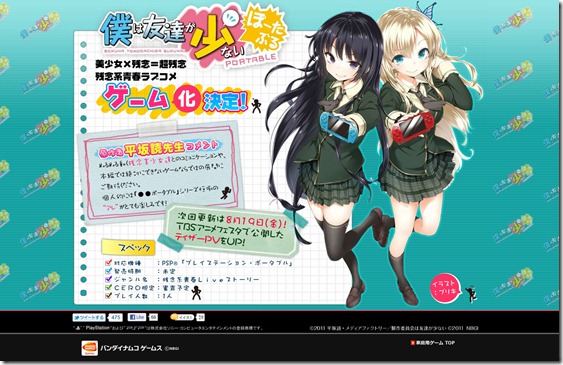 Boku wa Tomodachi ga Sukunai Portable(I Don’t Have Many Friends Portable), based on the anime series based on the light novel of the same name.