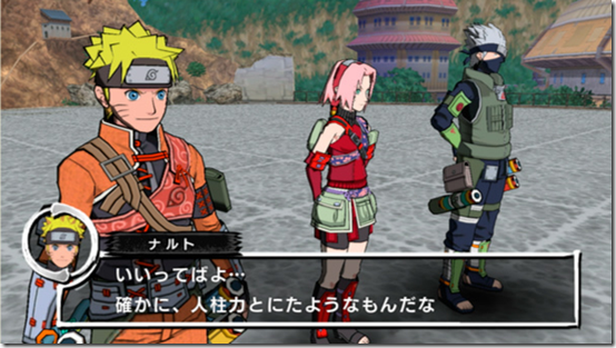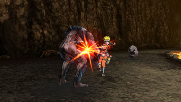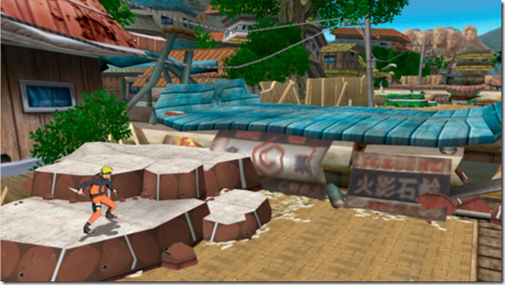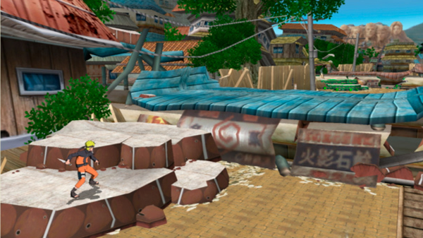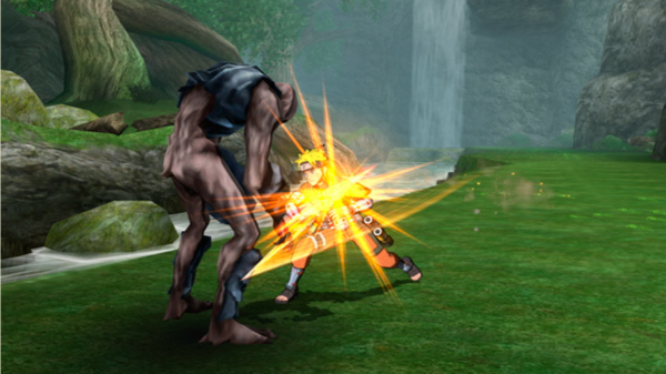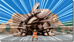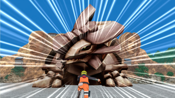 Naruto Shippuden: Dragon Sword Chronicles features an original story and new costumes where everyone carries a bunch of scrolls. While the Naruto characters have a cel-shaded look, Tomy decided to make the made-for-the-game-enemies 3D models.