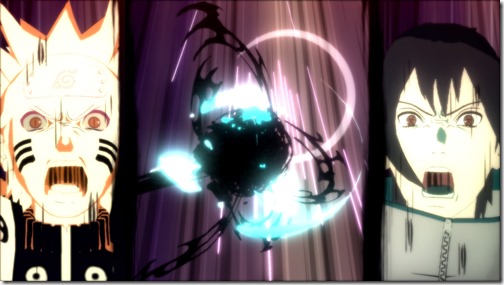 Another Naruto Shippuden: Ultimate Ninja Storm 4 demo had Hashirama battling Madara. Madara switches between acting like a regular fighter and using Susanoo. When Susanoo is activated, Madara cannot be hit and Hashirama has to avoid waves of energy waves coming towards the screen. Madara uses the same pattern, five tall waves that fan out, but can be sidestepped followed by a giant horizontal wave Hashirama has to jump over. There is an occasional QTE here where you move the analog stick left to do a quick dodge then press X to counter attack. This makes Hashirama create two shadow clones that keep Madara occupied while you charge a jutsu.
