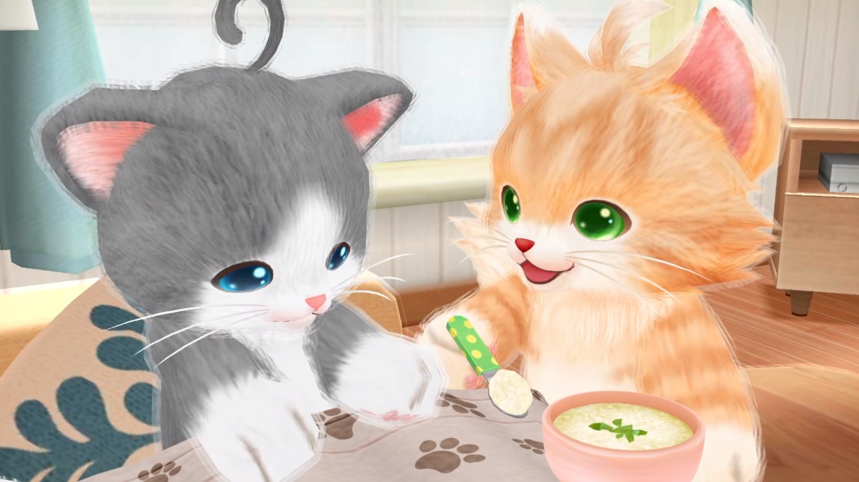 Neko Tomo is a new entry in the Teddy Together series, but instead of a teddy bear you’ll become family with a pair of kittens that you’ll communicate with and participate in various activities. The game flow has three main points. The first is to speak with them so they can learn more about you while learning new words. They’ll even learn how to say your name and have everyday small talk to share. The second is living the life with the kittens, which is basically activities with the kittens. This ranges from cooking, going on walks, fishing, taking photos, gardening, and plenty more. Lastly, the third is to deepen your bond with the kittens. This is basically the leveling system that increases the more you spend time with them to increase your “family level.” After the kittens get to know you better they’ll do things like bring you presents, serve you tea, and so on.