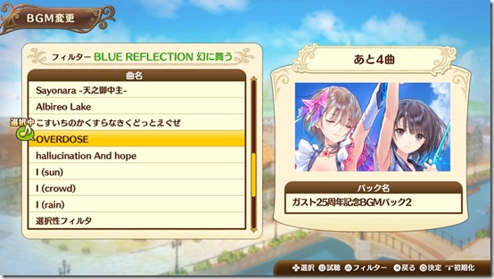 110 BGM tracks, including music from Nights of Azure, Nights of Azure 2, and Blue Reflection. Gust-chan