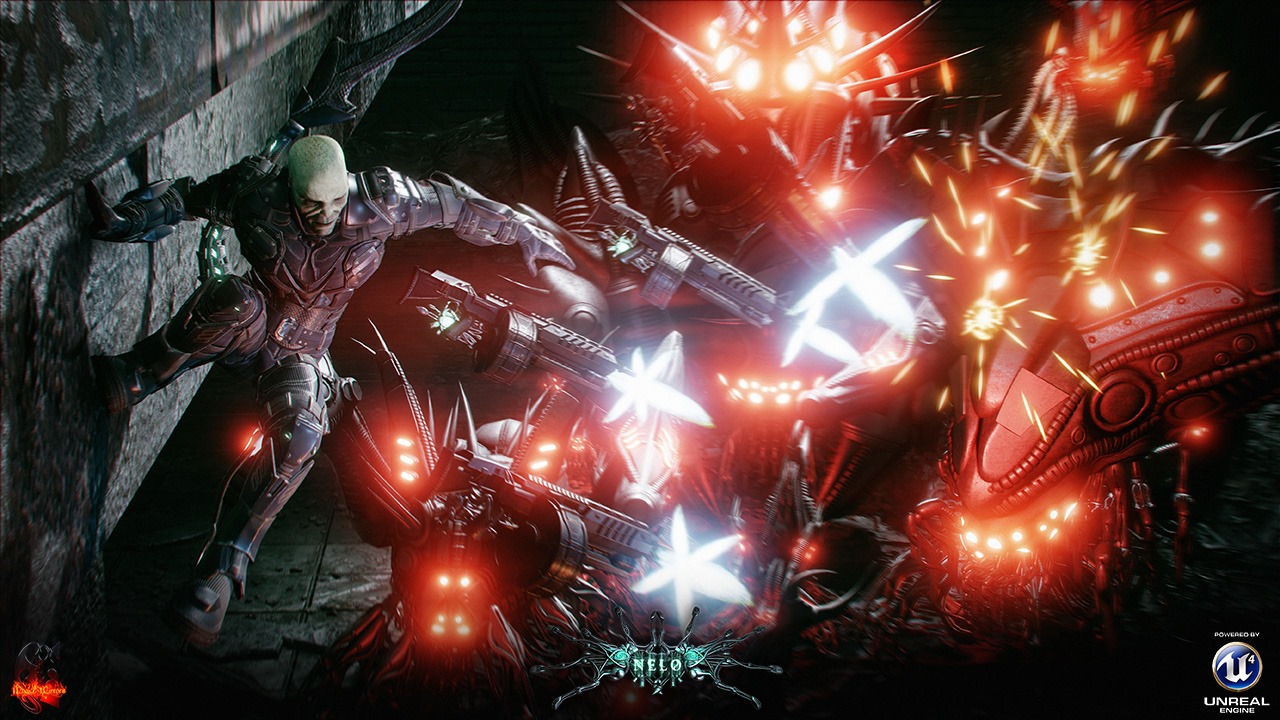 In Nelo, aliens are at war with their own AI creations, the Nightsithe, but players can fight back using the alien’s four limbs to attack, throw objects, or fire four guns at once. The player can also seamlessly switch between third person action and top-down, twin stick shooter viewpoints depending on combat needs.