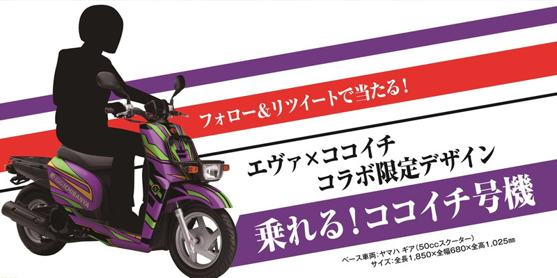 As part of a collaboration event with CURRY HOUSE CoCo, Neon Genesis Evangelion fans will have the chance to win a themed moped. This collaboration is to celebrate the upcoming release of Evangelion 3.0 + 1.0, or Shin Evangelion. [Thanks, Famitsu!] Additional rewards are also included in this limited time event. These include miniature versions of the grand prize Evangelion moped, t-shirts, towels, figurines, and a portable charger. Digital rewards will also be distributed in the form of phone wallpapers. In order to participate, you must follow the official CURRY HOUSE CoCo Twitter and retweet the corresponding collaboration tweet. Obviously, this campaign is only available for Japanese residents. Those overseas will not be able to participate in the raffle for that glorious Eva-themed scooter. You can get a better look at all of the prizes below.