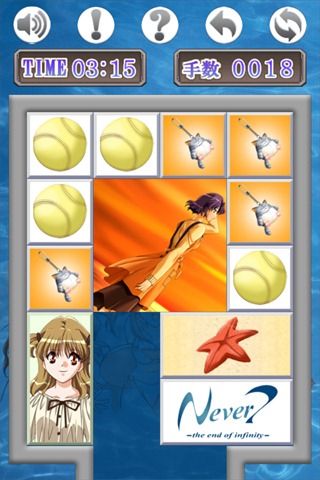 New for Never 7: The End of Infinity is a series of Android apps. You can unlock these freebies by earning points when playing the game. Each app allows players to pick a girl of their choice, so you can have a Haruka calculator and a Yuna alarm clock.