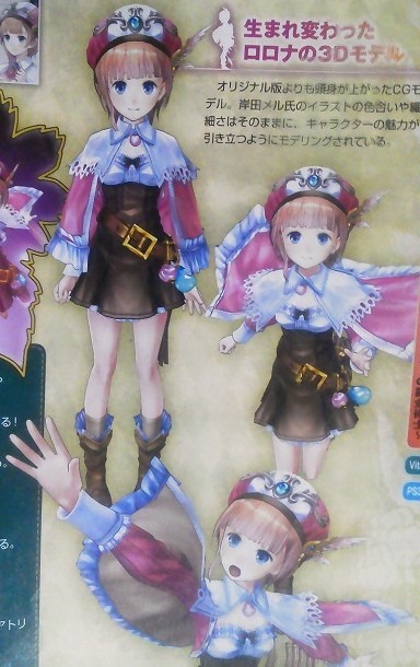 In addition to the revamped character models (pictured to the right), New Atelier Rorona will offer plenty of new content. You’ll have a private vegetable garden that allows you to cultivate veggies. There will be benefits for using displayed items for decorations. The time capsule will work by putting items inside, and sending it through space-time, which results in a different item altogether. Players who have save data for either Atelier Totori Plus and Meruru Plus will be getting special benefits, too, which have yet to be revealed. Additionally, those who have save data of Atelier Ayesha and Atelier Escha & Logy will also have something fun to look forward to. According to the magazine, Gust wants New Atelier Rorona to be considered more of a new release, rather than a “plus version,” as the 3D modeling and everything else are being developed within Tecmo Koei.