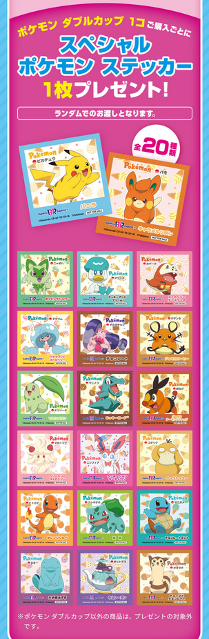 Like the ongoing Super Mario Bros. campaign at Baskin Robbins, the Pokemon collaboration will feature exclusive flavors, sundaes, drinks, cakes, and containers. Containers and bags focus on the Pokemon from Scarlet/Violet, which is the latest generation. If you purchase a double scoop, you can also get a Pokemon sticker with ice cream in the background. Aside from the new Pokemon, you can get stickers of species like Dedenne, Tepig, Psyduck, Sylveon, and Chikorita.