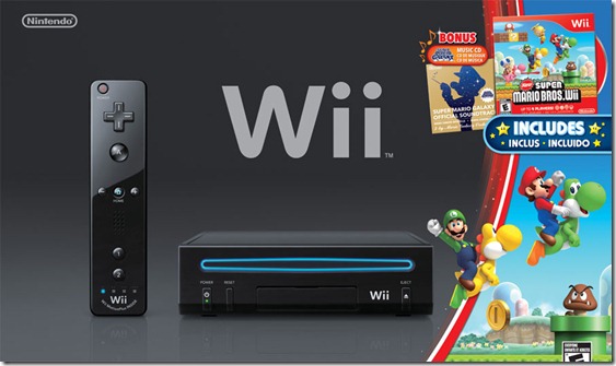 Nintendo of America will be releasing a special Wii bundle later this month. The new holiday bundle will contain with a black Wii, a black Wii Remote Plus, black Nunchuk, a copy of New Super Mario Bros. Wii and a special Super Mario Galaxy soundtrack CD.