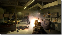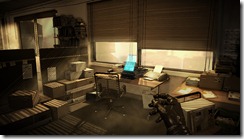 Square Enix, today, updated the Japanese press with more screenshots of Adam jumping through windows and sneaking behind desk jockeys. While these screens show Adam, Deus Ex: Human Revolution is played from a first person perspective. The camera pans out and reveals Adam when he does a takedown move or takes cover.