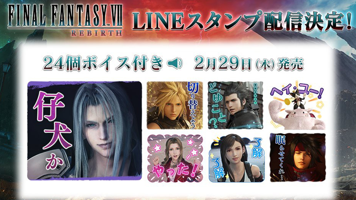 Square Enix announced that a new pack of FFVII Rebirth stickers is now available on the LINE messaging app. Additionally, two previously released FFVII Remake and FFVII Remake Intergrade packs are also available.