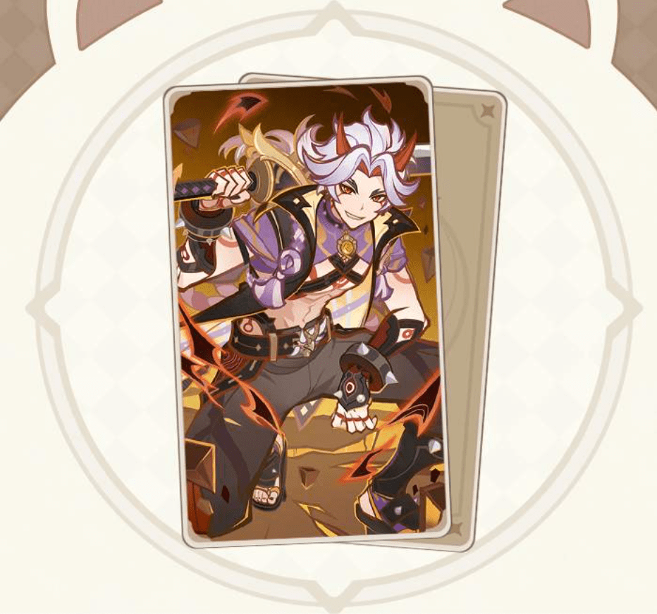 Ayato’s Kyouka Fuushi Talent Card can be equipped for three Hydro dice if you pull it. When used, he’ll immediately perform his Elemental Skill. He’ll also do one more damage to enemies who have over six health when he has the Takimeguri Kanka effect. So a normal attack would deal four damage instead of two. Next, here’s the list of Itto’s character card abilities in Genshin Impact Genius Invokation TCG.