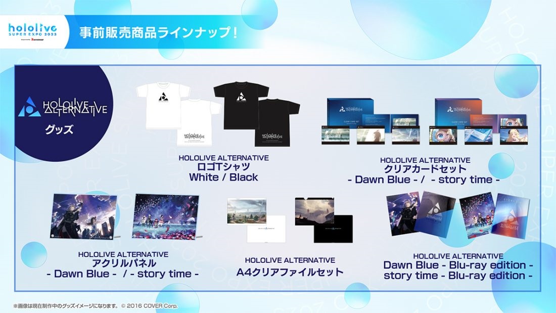 There are also some goods you can get for Hololive Alternative. These includes the Dawn Blue and story time Blu-Rays.