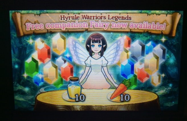 Those of you who play Hyrule Warriors Legends and have SpotPass enabled can look forward to some new content in the near future. [Thanks, Nintendo Everything.] Nintendo is giving out the following via SpotPass: · An exclusive companion fairy named Magnolia · 10 Delicious Elixir Soups · 10 Delicious Carrots · 500,000 rupees Hyrule Warriors Legends is available for the Nintendo 3DS.