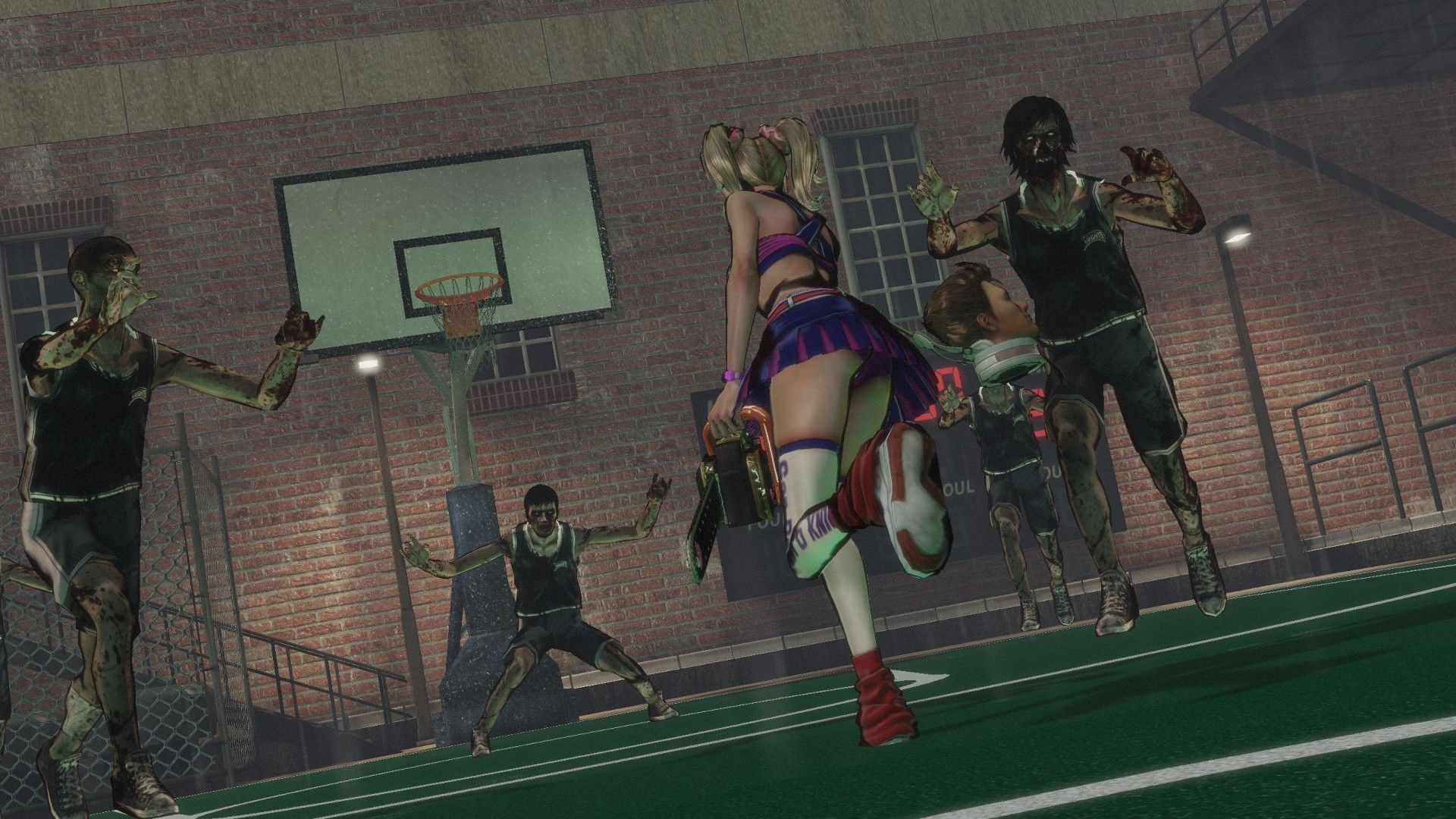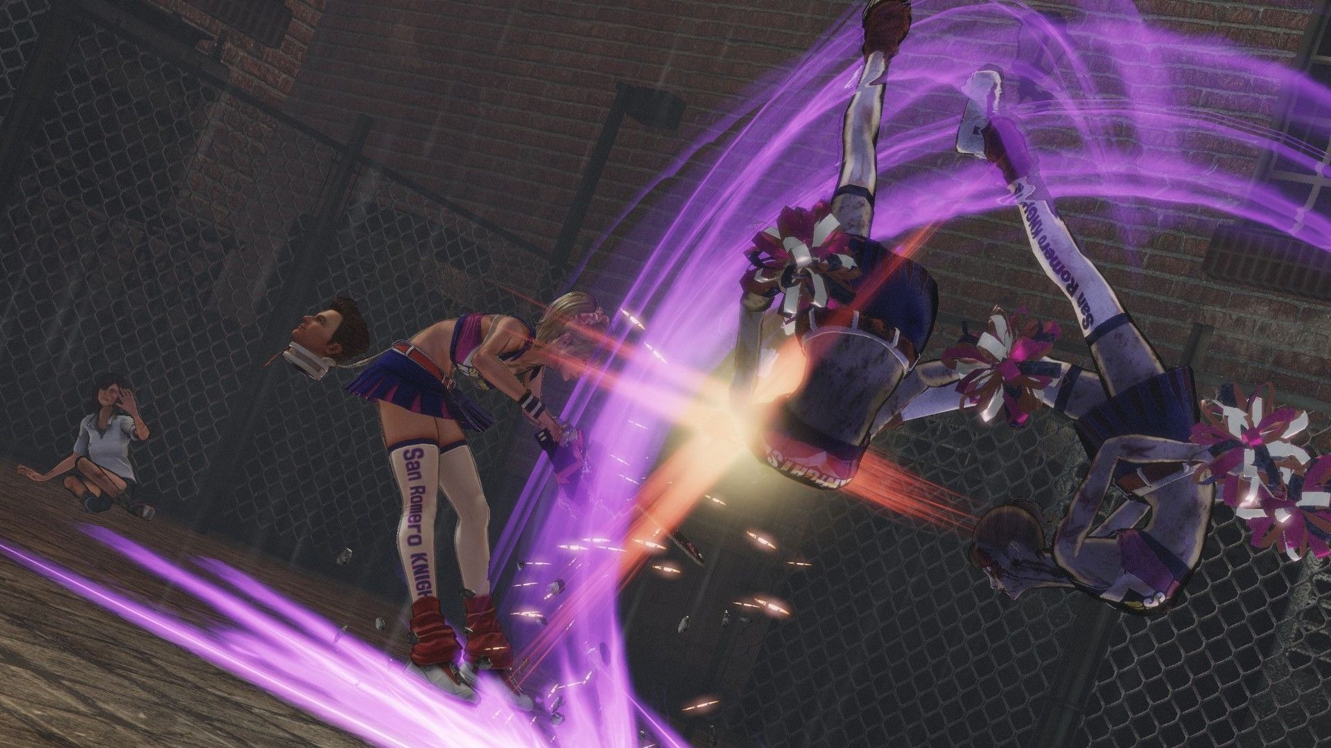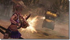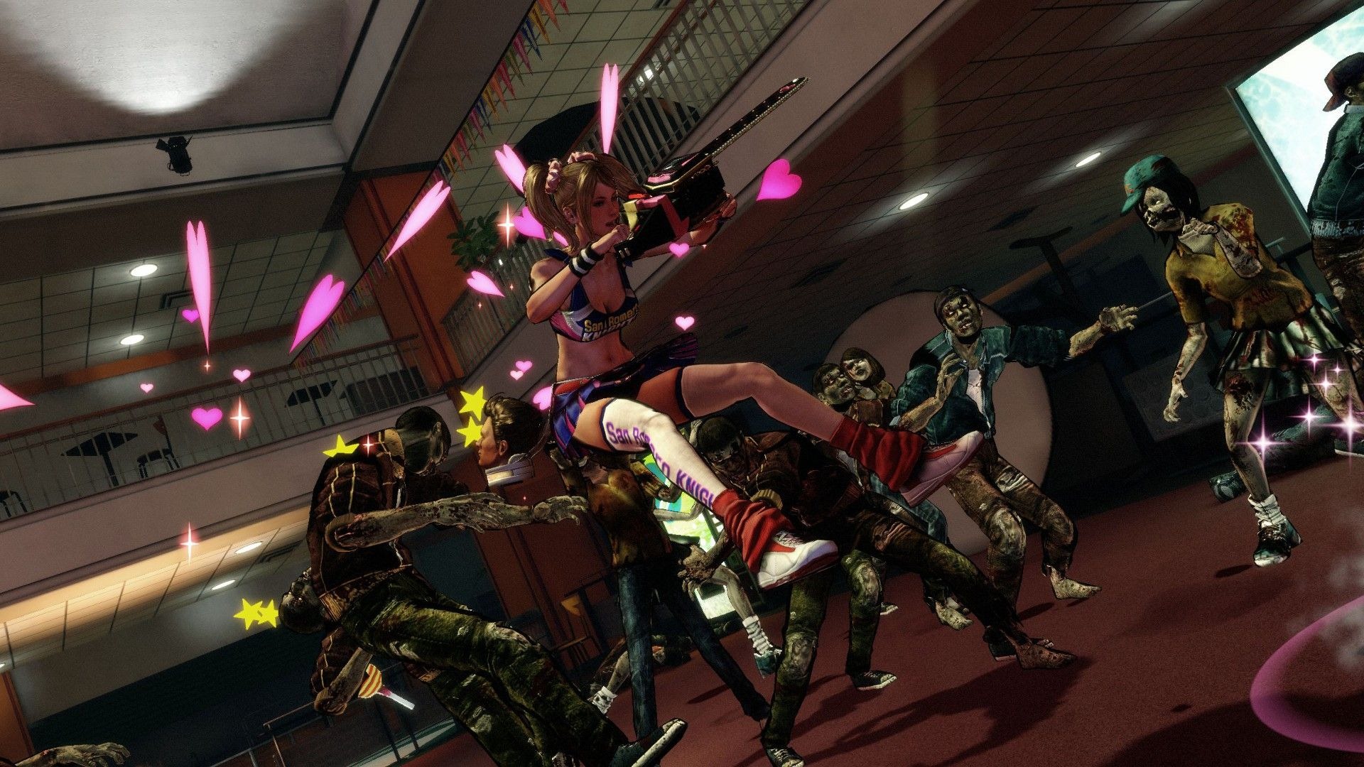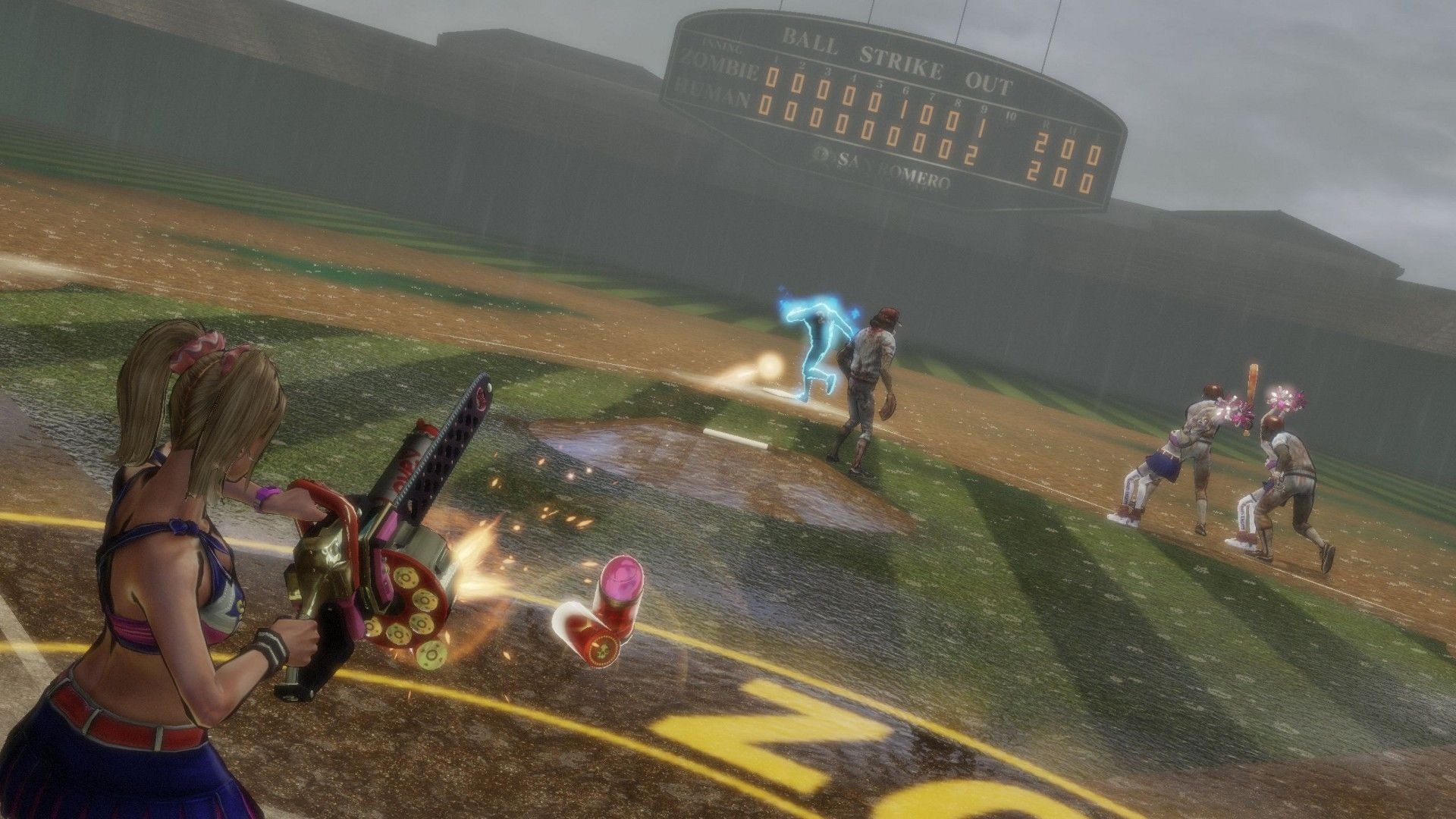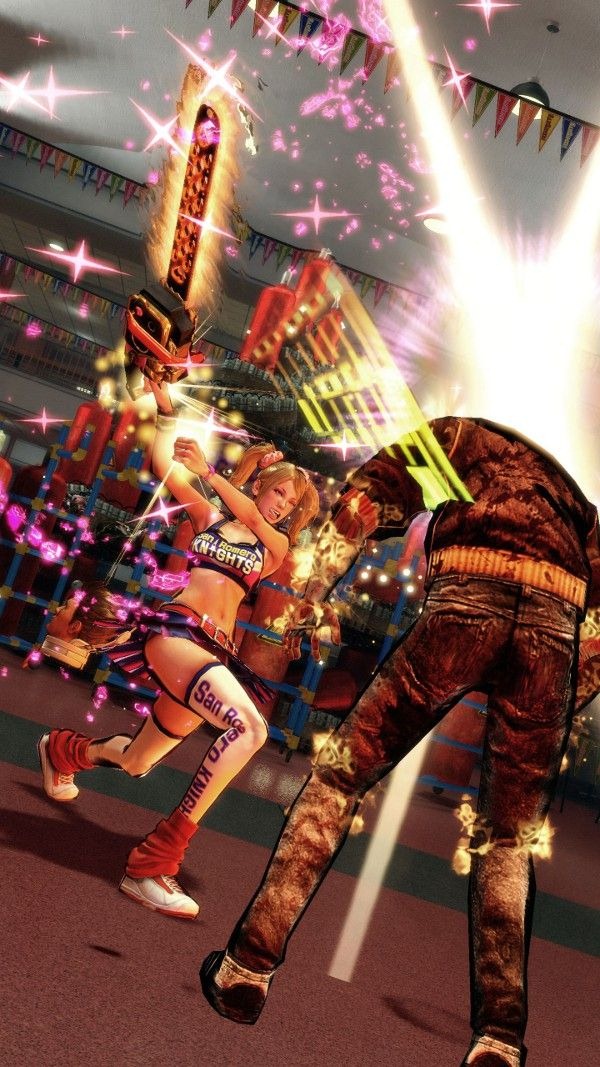 Lollipop Chainsaw also has special event scenes like zombie basketball, baseball, and a harvester ride where Juliet mows down zombies in a vehicle.