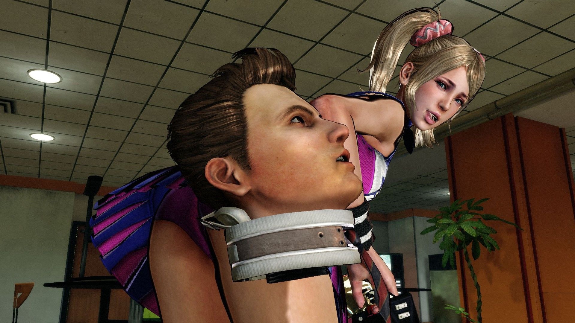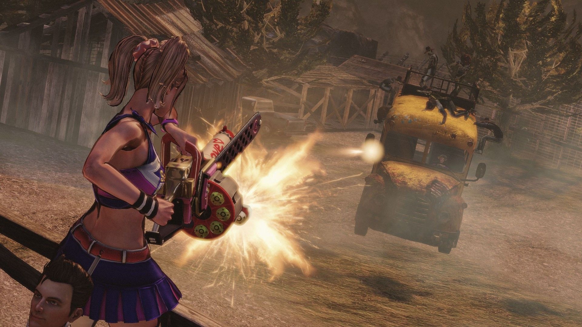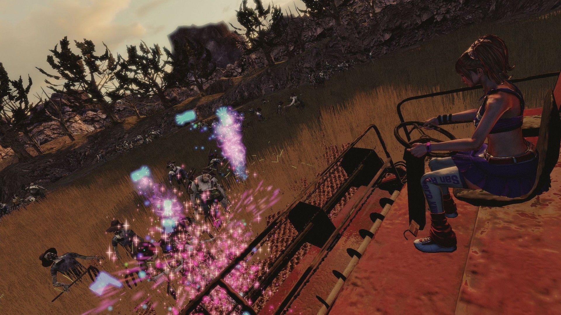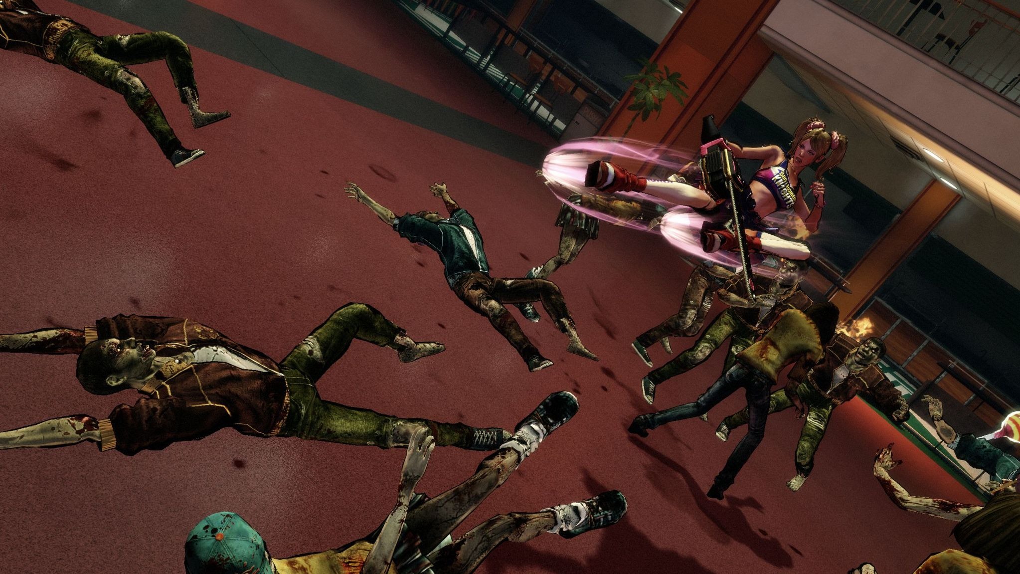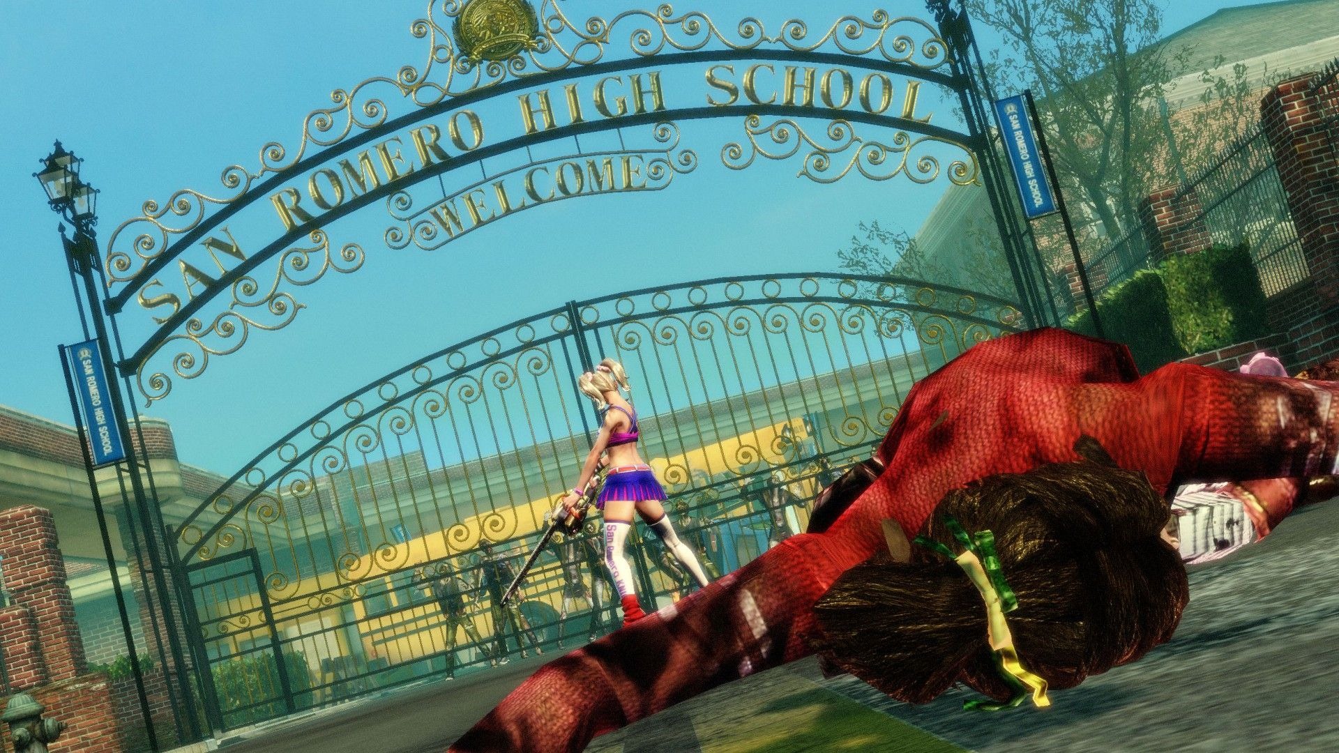 Lollipop Chainsaw also has special event scenes like zombie basketball, baseball, and a harvester ride where Juliet mows down zombies in a vehicle.