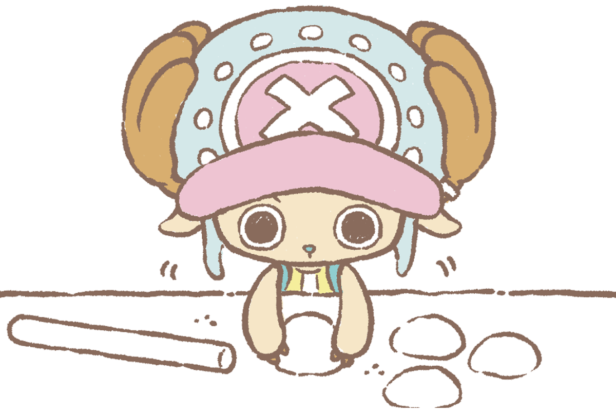 The first comic hasn’t appeared yet and there are currently no animations at time of writing showing what his adventures will look like in Chopper’s yet. However, the official site did share a key image and three sample images that suggest what the art style will look like and how it might go. The key image serves to only show a more muted, pastel, and cute design direction for Chopper. In the images, we see the character walking down the aisle of an airplane to head on a trip, doing some baking, and taking a selfie.
