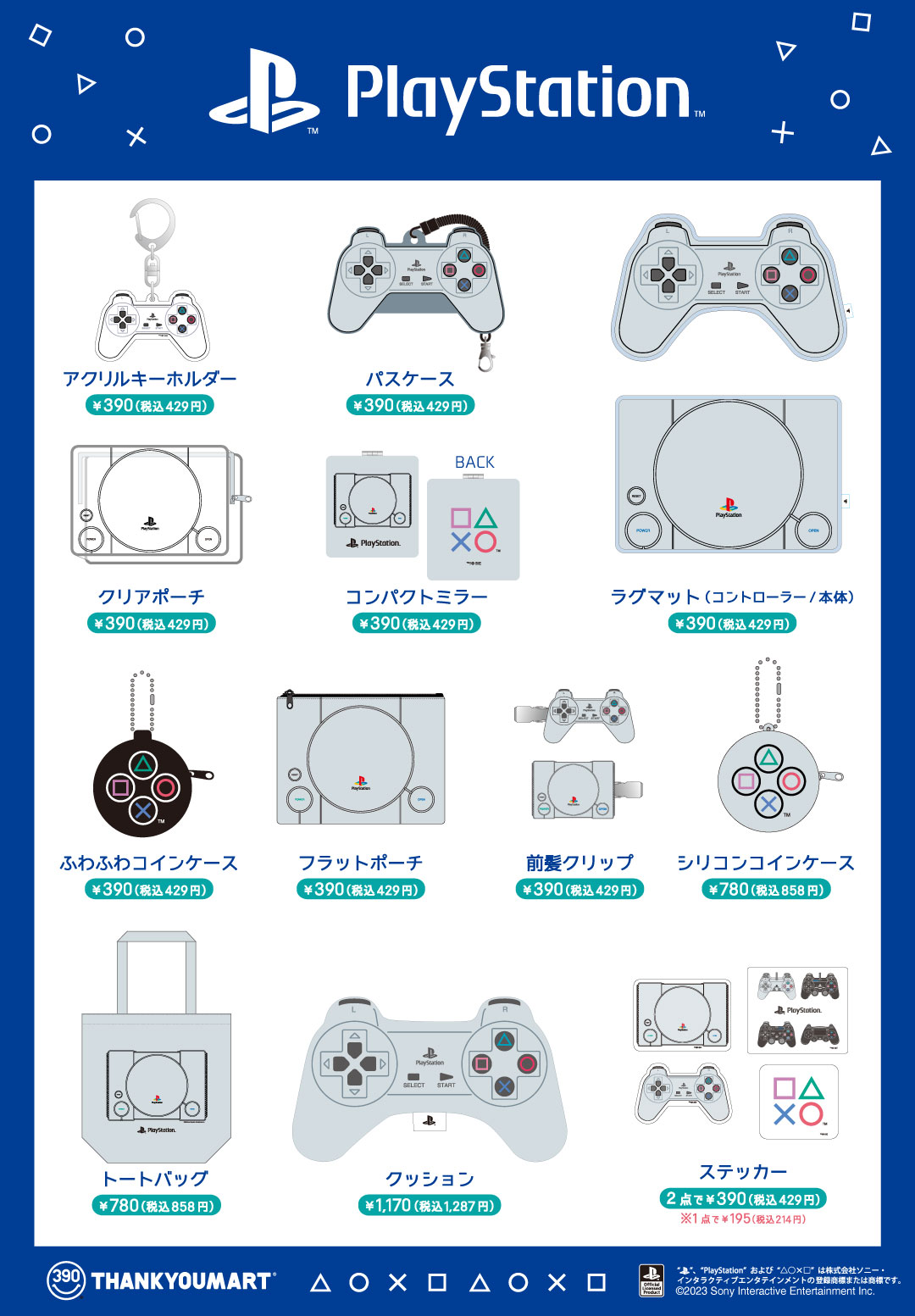 Sony announced a new line of PlayStation merchandise, with items featuring motifs reminiscent of the original PlayStation 1 model. Japanese retail store Thank You Mart will release the new line of official licensed PlayStation goods from March 17, 2023. The items will be available to purchase from retail stores and the online store. Some of the 16 items offered include stickers, keychains, bags, compact mirrors, rugs, and cushions. [Thank you, Game Watch!] The items in the new line of PlayStation licensed merchandise are modeled after the original PlayStation 1 console and first DualShock controller. A majority of the items offered will cost 429 JPY (roughly $3 USD), with the exception of the silicon coin purse and tote bag. Those will cost 858 JPY (~$6 USD) The cushion will cost 1,287 JPY (~$9 USD.) You can check out the official PlayStation merchandise in further detail, alongside the full merchandise catalogue, in the gallery below.