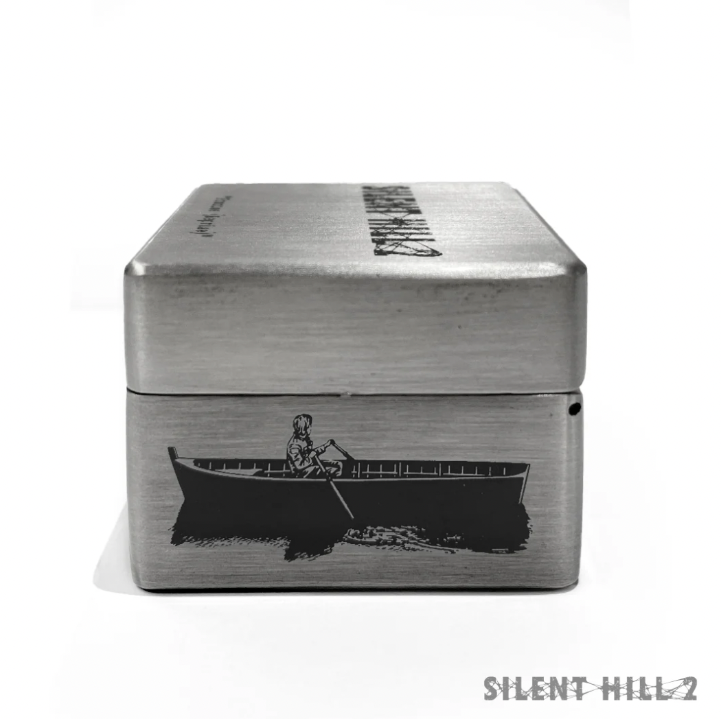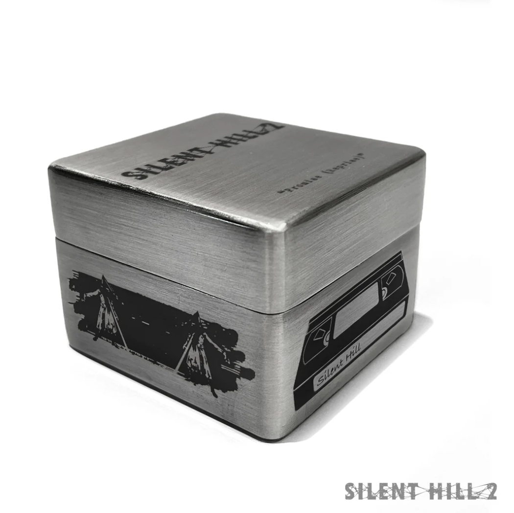 The Silent Hill 2 Metal Music Box plays “Promise (Reprise),” a song that originated Silent Hill 2. However, it also went on to also feature prominently in other Silent Hill media after that debut. The metal box features designs based on Mary’s video tape, the line “There was a hole here, it’s gone now,” the two Pyramid Heads, and James rowing the boat. It is currently available for pre-order for $79.99.