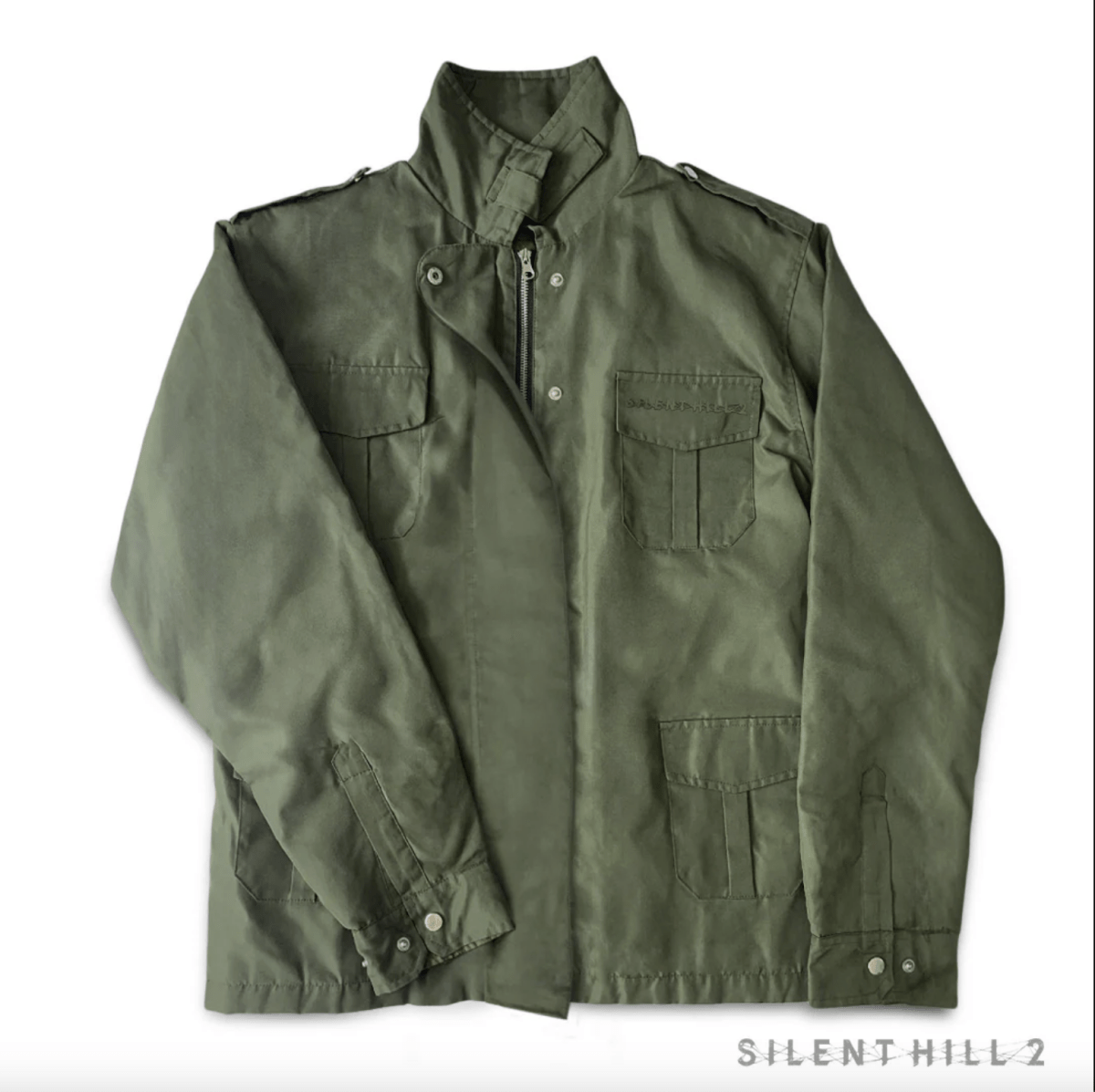 The Silent Hill 2 James’ Jacket is a new version in honor of the Silent Hill 2 remake. It is made of 100% woven cotton. The inlay on the inside features the seal of Metatron, the sigil used as a save point in the game. The jacket also will come with a replica map of the town of Silent Hill and a tactical flashlight (sans batteries). It is retailing on the Official Konami Store for $149.99.