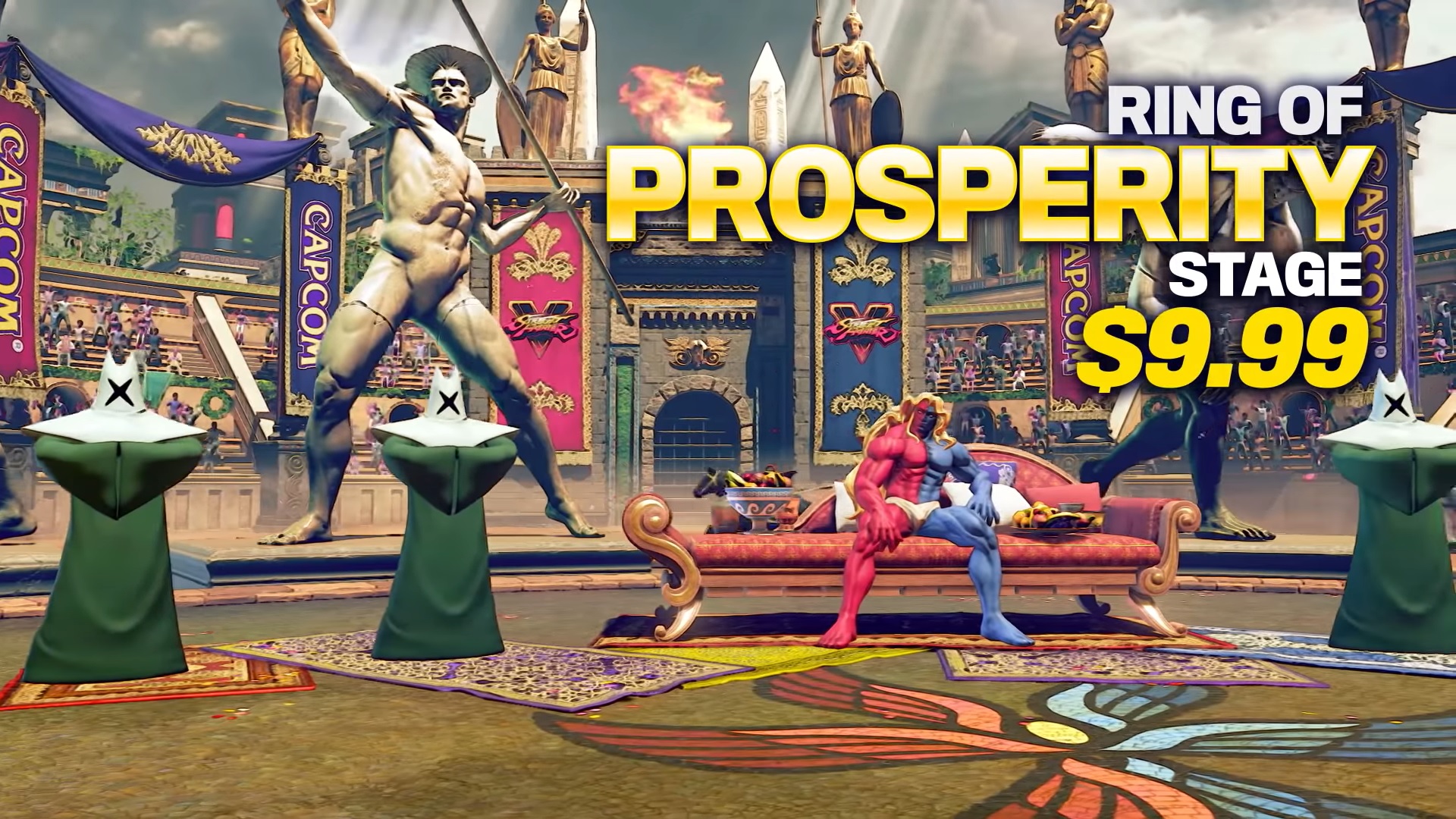 As for the new stage, it is called the Ring of Prosperity. It features Gill lounging on a couch in the background while people fight. As with the Laura Champion’s Choice costume, it will be available in the pass or alone for $9.99 outside of it.
