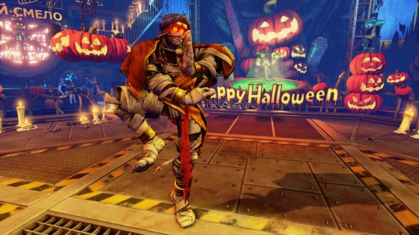 The 2017 Halloween costumes makes Dhalsim a mummy, M. Bison a demon, Urien look like Gill, Birdie a butcher, and F.A.N.G. a mad scientist. The 2016 Halloween costumes and Spooky Arena stage are being sold again as a bundle.