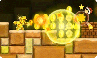 New Super Mario Bros. 2 emphasizes collecting coins. There are different ways to increase the number of coins you gather as you run through a stage, including a gold ring that converts all enemies to gold, which yield gold upon defeat. Another item, the gold block makes gold coins pop out of Mario’s head. New Super Mario Bros. 2 also has a Coin Rush mode, which we’ve reported on before. In Coin Rush, you play three randomly selected stages and try to collect as many coins as you can. The game keeps track of all the coins you collect across all its modes, and Nintendo say that you can hit the million mark if you play well enough. As previously reported, New Super Mario Bros. 2 will have local co-op multiplayer across the entire game and DLC in the form of extra Coin Rush stages. It’s scheduled for release on August 19th in the U.S. and you can read our hands-on impressions here. ![]()