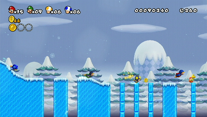New Super Mario Bros. Wii is also the first Nintendo game to feature a dynamic help system, which allows you to access a mode showing how a level can be completed if you are stuck. The best thing about this mode is that you are free to jump into the action you’re watching on screen at any time!