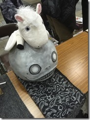 Yoko, ever shy and unusual, sat at the booth wearing the Emil mask that he wore on stage at E3 2015. He wasn’t alone, either, as NieR: Automata producer Yosuke Saito was there to help Yoko out.