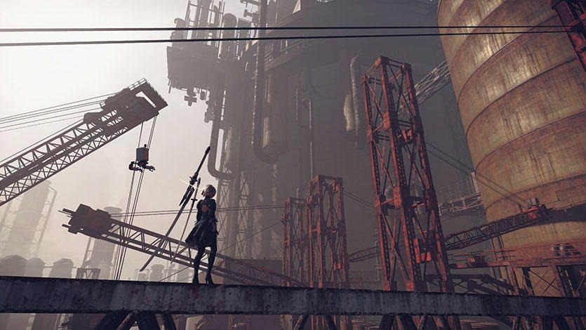 In the demo, you’ll take on the role of protagonist 2B and take on machines in an abandoned factory. It’ll give you a taste of NieR: Automata’s world along with a first experience of its action and sense of speed that comes with it.