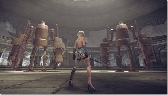 After beating the level 80 colosseum battles in all three arenas and earning the costumes from each one, a small story segment can be viewed at the Amusement Park. Your Androids will be able to take an elevator down to a room where a stack of TVs are piled in a corner. Once there, they get to play through a segment as a certain character. People who purchased and saw the Machine Spear’s entire story may recognize him. Once it is completed, Amazarashi’s “Deserving of Life” music video plays.