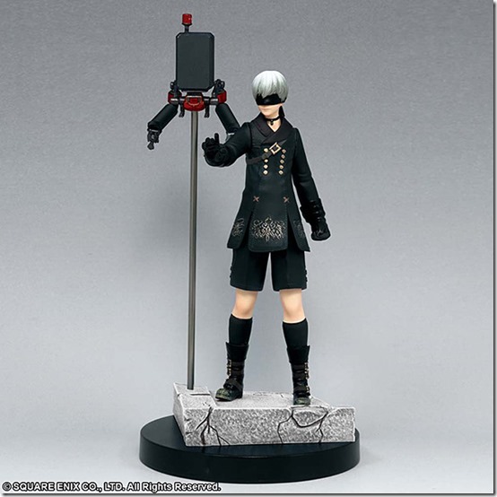 The figure measures about 90mm in width and about 150mm in height, and it is currently available for pre-order at the Japanese Square Enix e-Store for 6,998 yen plus tax. The figure releases on October 27, 2017 in Japan. For the sake of comparison, producer Yosuke Saito shared a look at the Black Box Edition 2B next to the new 9S figure: