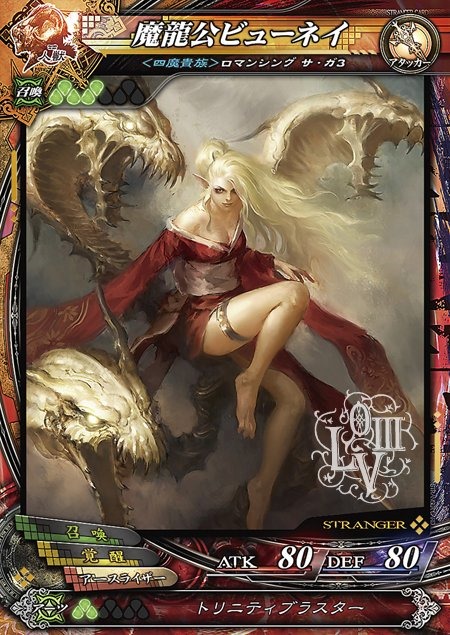And since Square Enix is bringing SaGa back to the forefront, four villains from Romancing SaGa 3 can join your Lord of Vermilion party. From top left to bottom right we have Aunas, Byunei, Arakes, and Forneus.