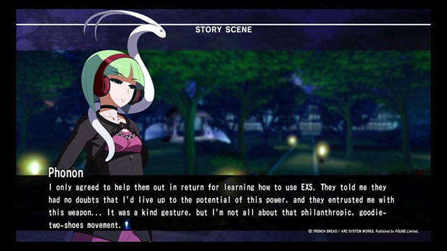 There are quite a few characters making their debut in Under Night In-Birth Exe:Late[st]. One of them is Yoshi… Phonon. She’s a young woman who feels like she’s destined for something greater. Which is fine. There are plenty of people out there with a lot of ambition. But not all of them want to purposely put themselves in a life-threatening situation so they can develop superpowers. Yeah, Phonon is that kind of woman.