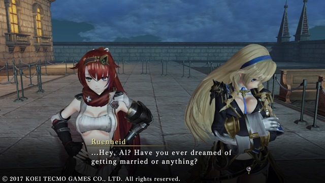 Nights of Azure 2: Bride of the New Moon wants people to see how connected Aluche is to various people in the world. Bonds are constantly growing as you play. There are even gameplay mechanics designed to show affection and closeness between her and the other heroines. And, even though the story focuses on a particular relationship, just like the original, you still get to see special moments with other heroines.