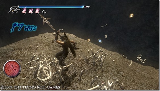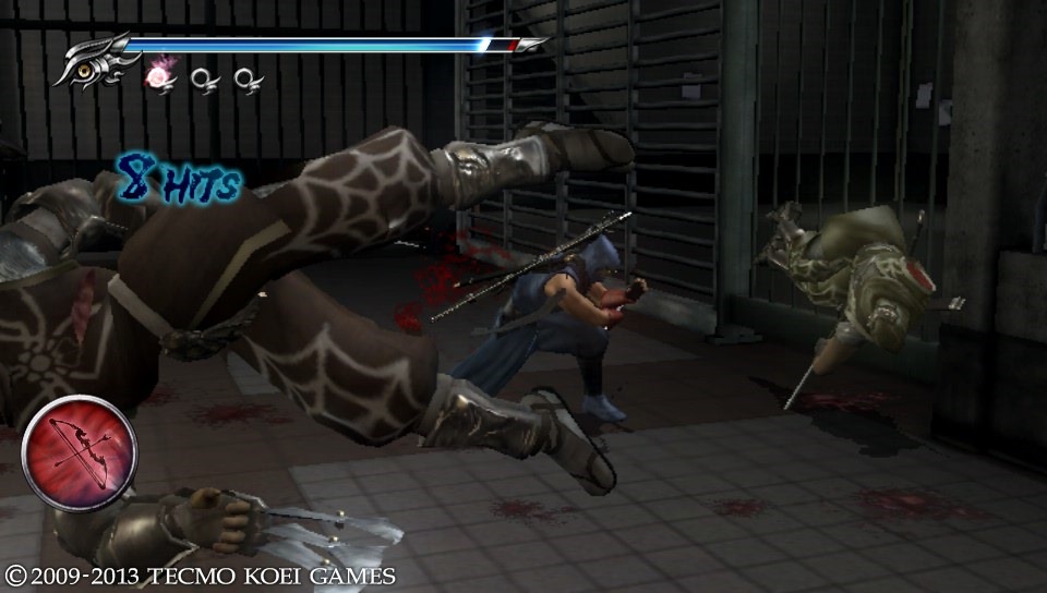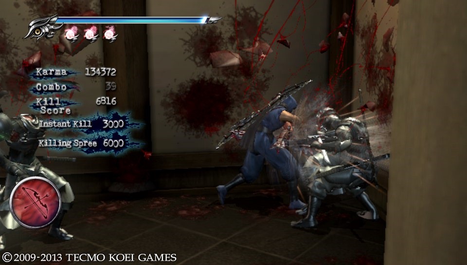 Also in the settings was an option to turn off the gore, replacing the blood and chunks that limbs and heads are reduced to with sprays of purple mist. While doing this seemed to provide a marginal performance boost, gore was touted as a feature of Ninja Gaiden Sigma 2 Plus, and dammit, I wasn’t going to turn it off. That said, on the topic of gore, as you can see in this screenshot, the game isn’t nearly as grisly as the original Ninja Gaiden II, just a touch more than Sigma 2…