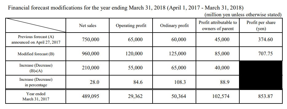 Based on the sales performance for the six months ended on September 30, 2017 and after, Nintendo has modified its financial forecast in consideration of the revised sales prospects as well as the revised assume exchange rate (from 115 yen to 125 yen per euro).