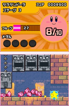 Yes, the Nintendo 3DS is coming soon, but Nintendo is still developing games for the 2D-only Nintendo DS. One of them is a brand new Kirby title simply called Kirby as its temporary name. Kirby is solid in this game and plentiful. Screenshots show multiple Kirbys (apparently you can have 10) working together.