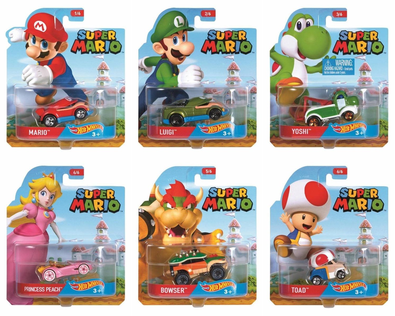 Last year, Mattel partnered up with Nintendo to release a line of Hot Wheel toys based on classic Mario games, such as Super Mario Bros., Super Mario Bros. 2, Dr. Mario, and more. The two companies are now teaming up once more to release a new set of Hot Wheels. [Thanks, Gaming with Swag.] This time around, the Hot Wheels will be based on the characters themselves, including Mario, Luigi, Yoshi, Peach, Bowser, and Toad. The new set is estimated to release sometime in August.