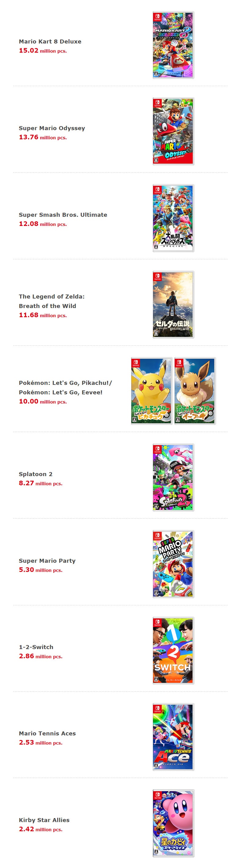 - Super Smash Bros. Ultimate – 12.08 million pcs.