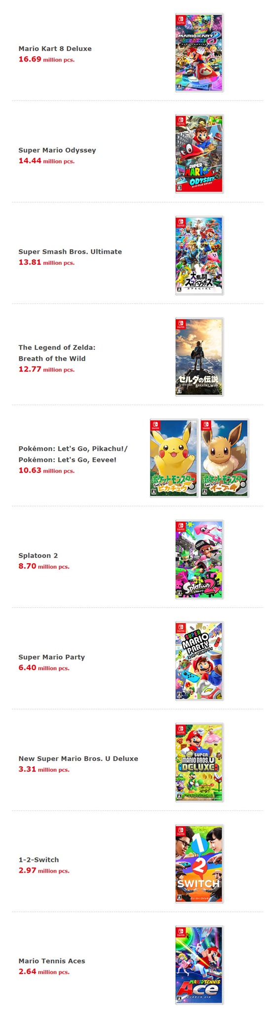 - Super Smash Bros. Ultimate – 13.81 million pcs.